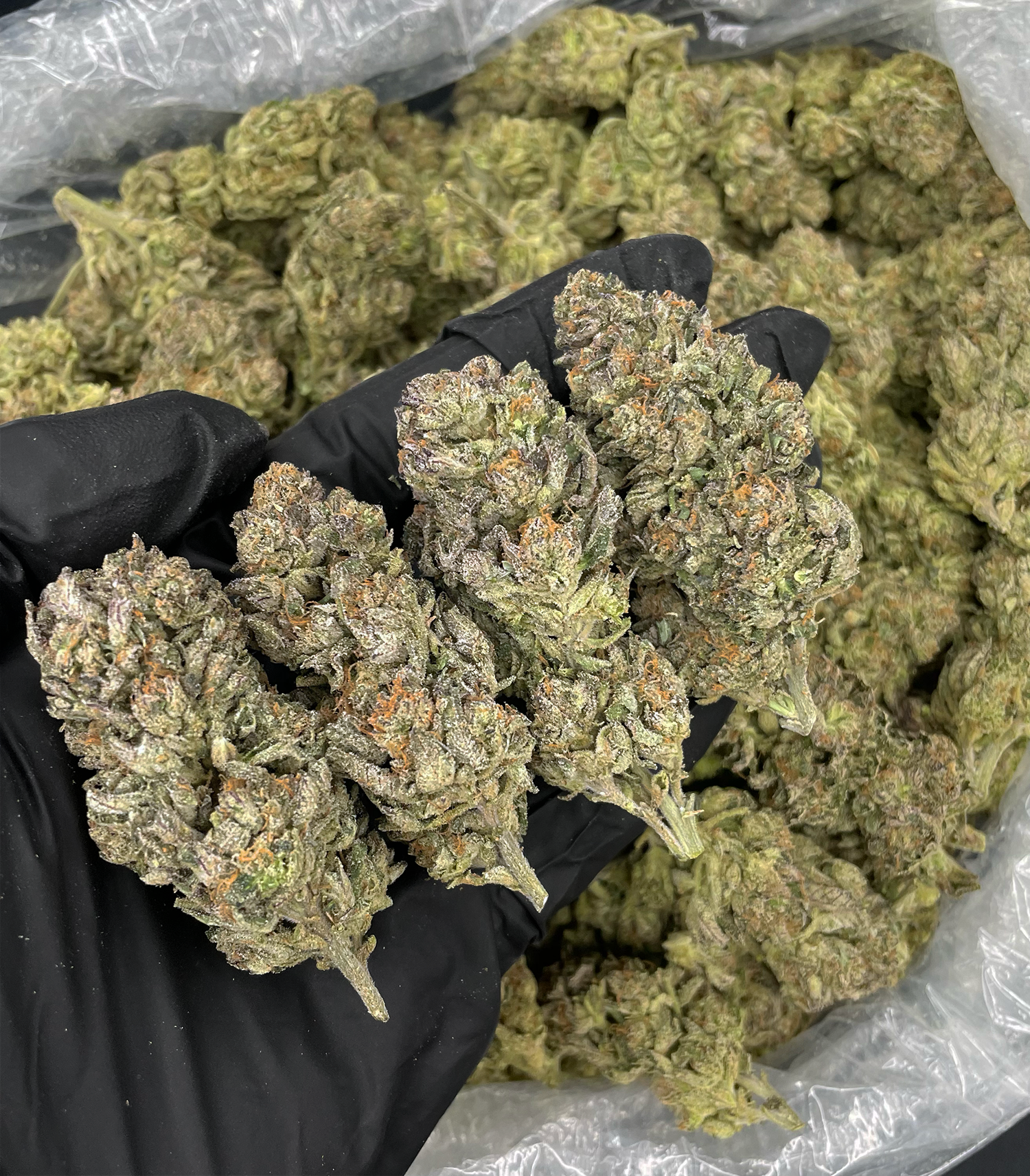 👀 Appearance: Dense green buds, orange pistils, thick trichomes