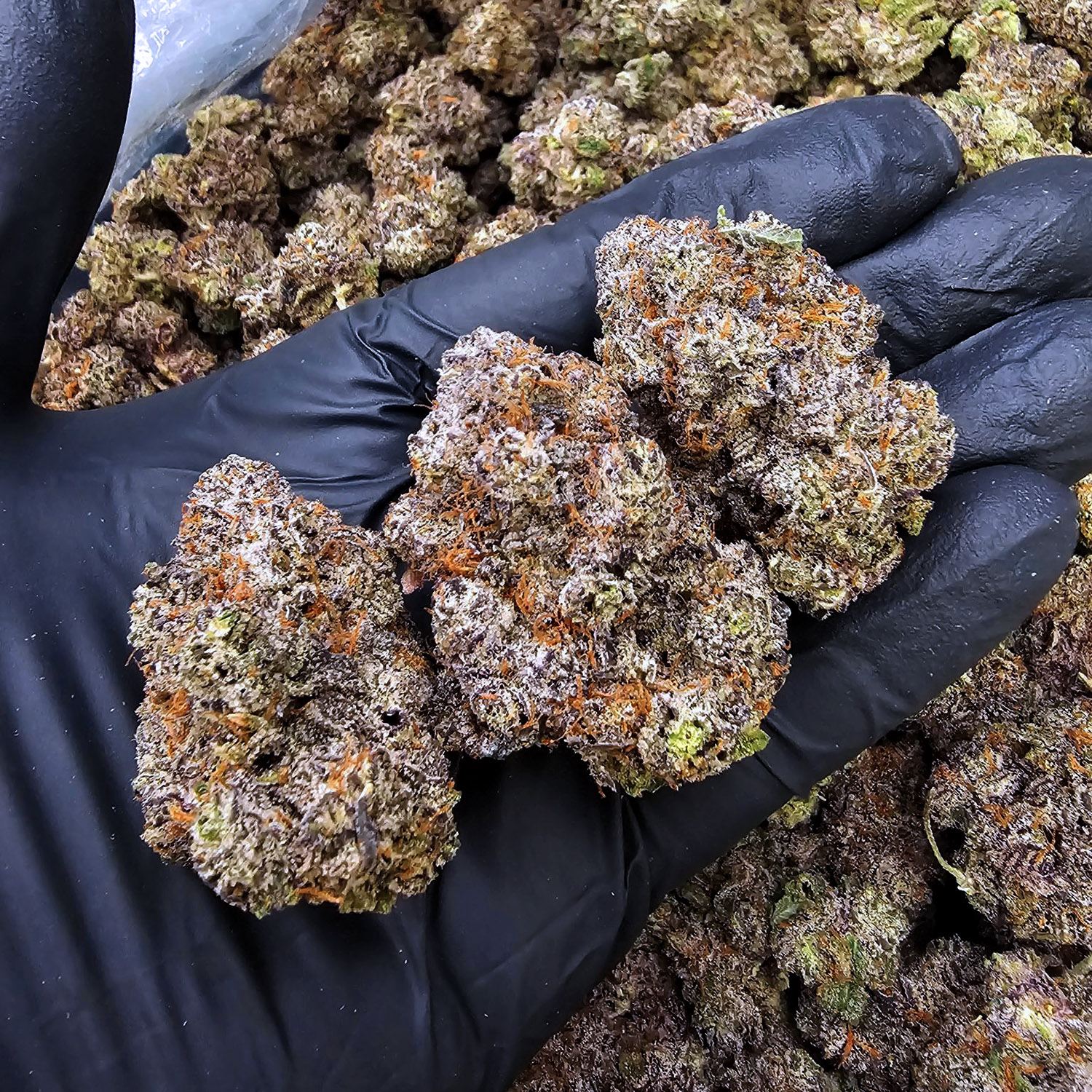 đď¸ Appearance: Dense, resin-coated buds; dark greens; purple accents; heavy trichomes