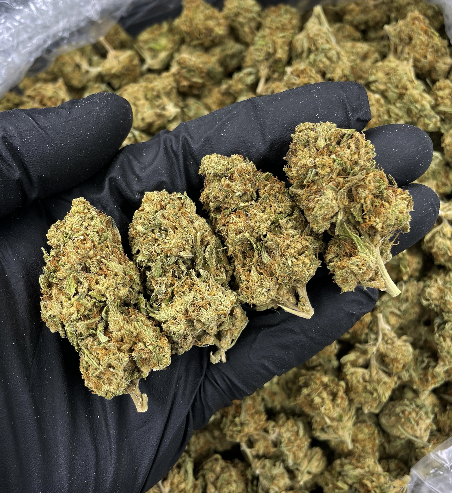 Thick coating of fine white crystal trichomes and resin
