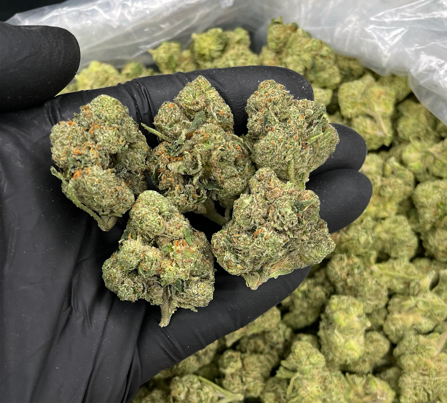 👀 Appearance: Dense purple-green buds, thick orange pistils, heavy trichome frosting
