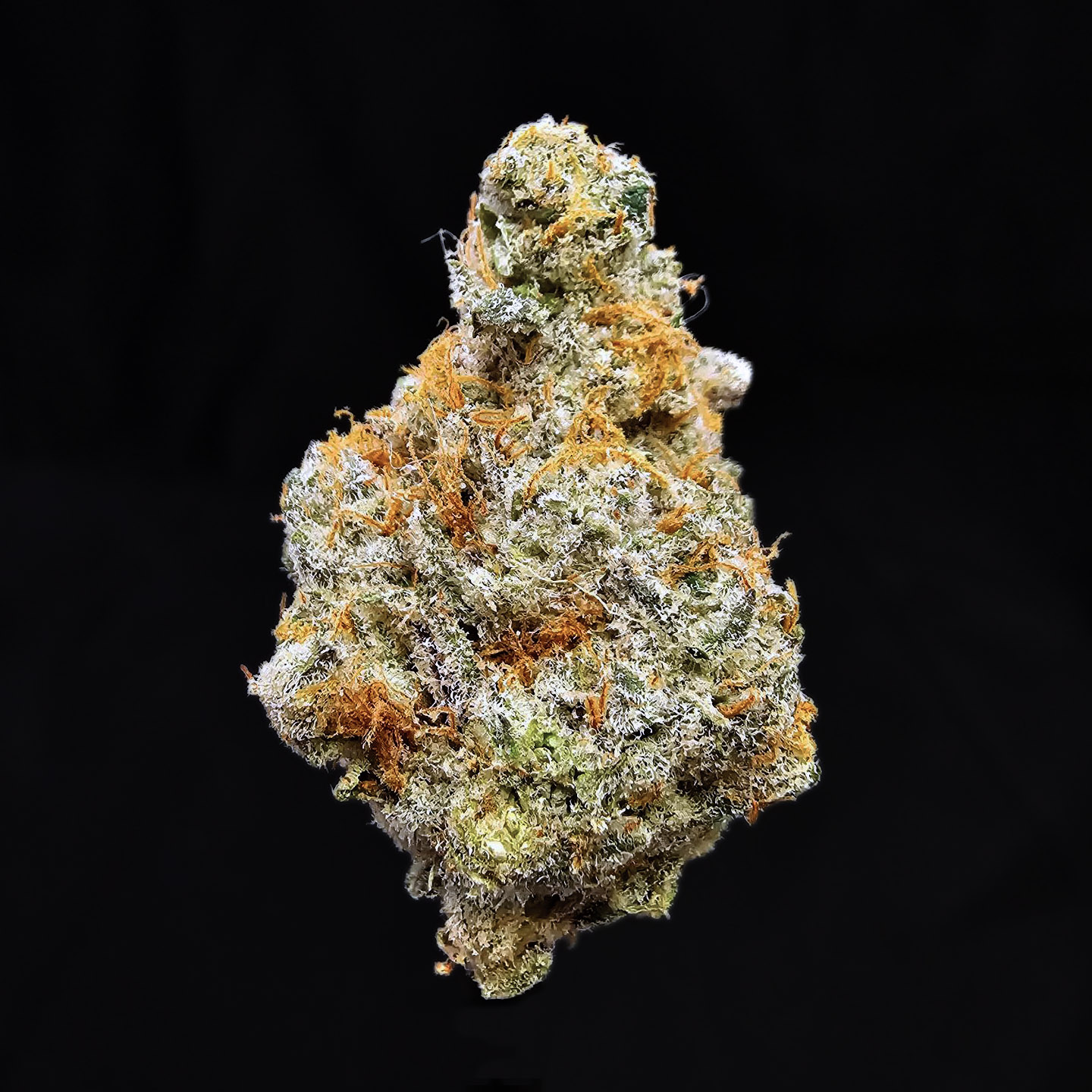 👁️ Appearance: Dense frosted buds, pale green with orange pistils and heavy trichome coverage