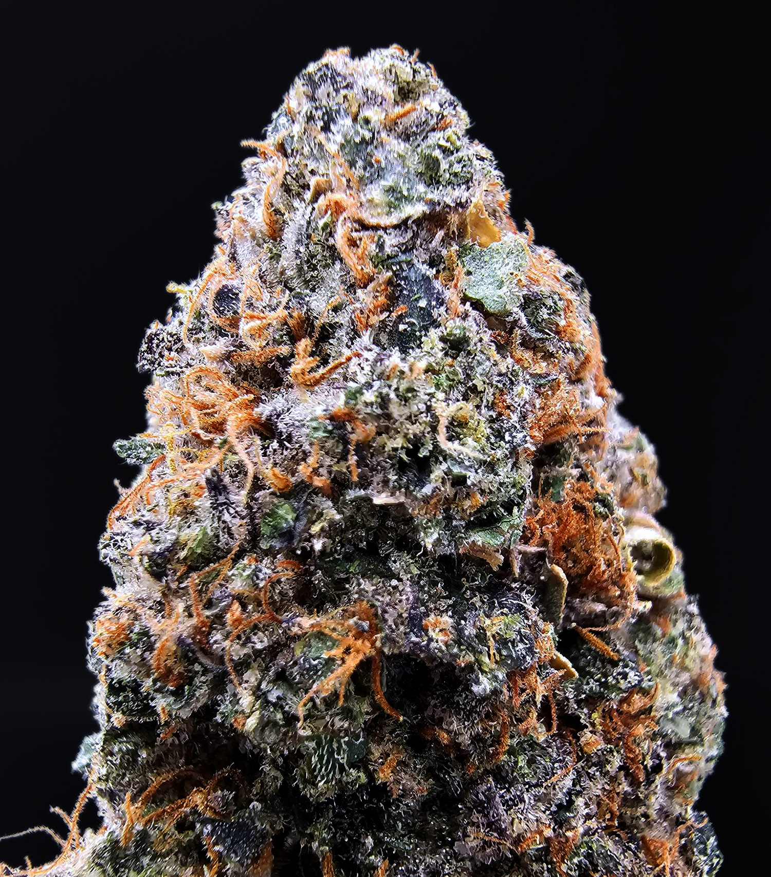 Bright green buds with amber pistils and frosty trichomes