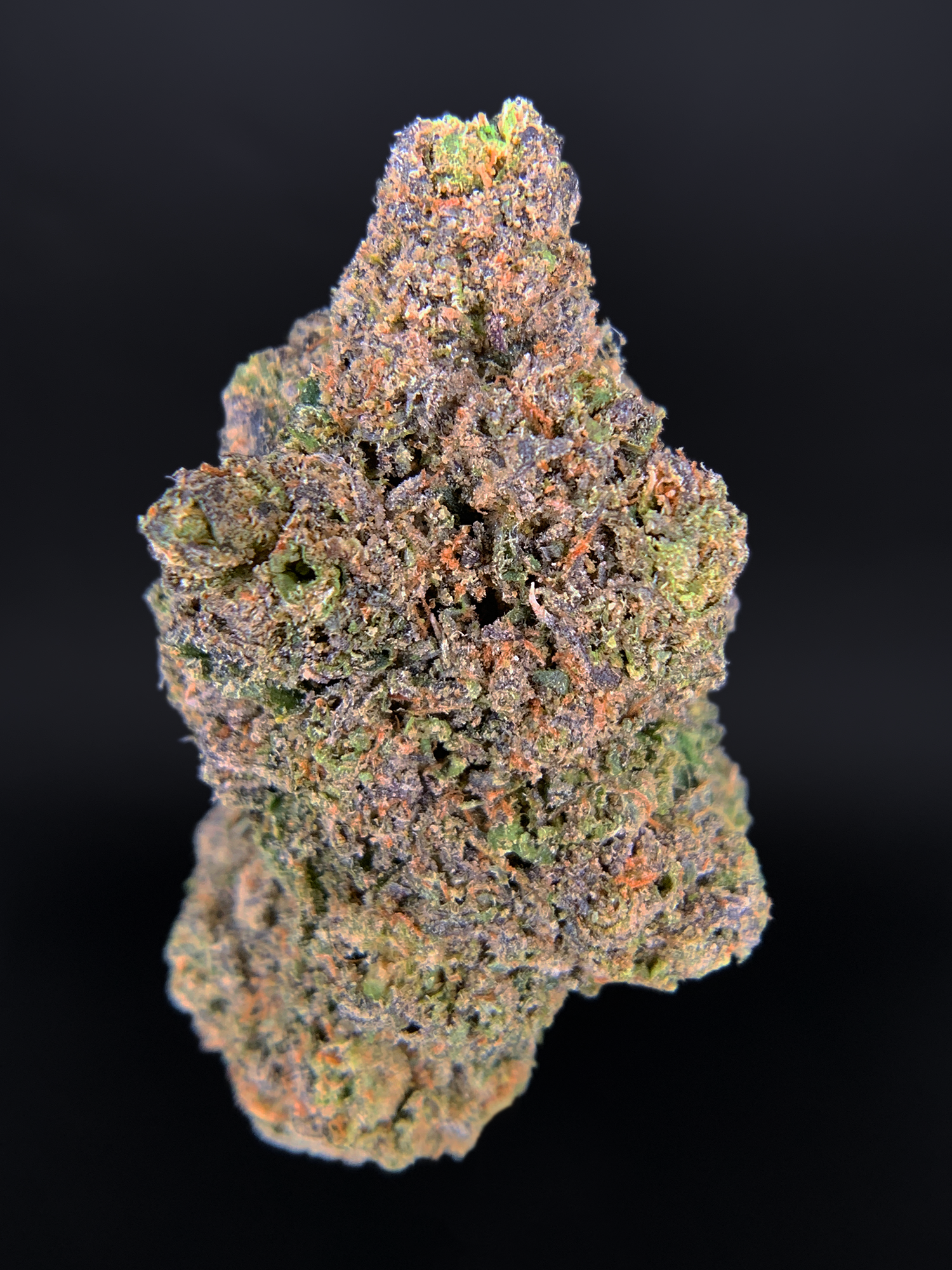 Appearance: Purple-green buds with fiery pistils and glassy trichomes
