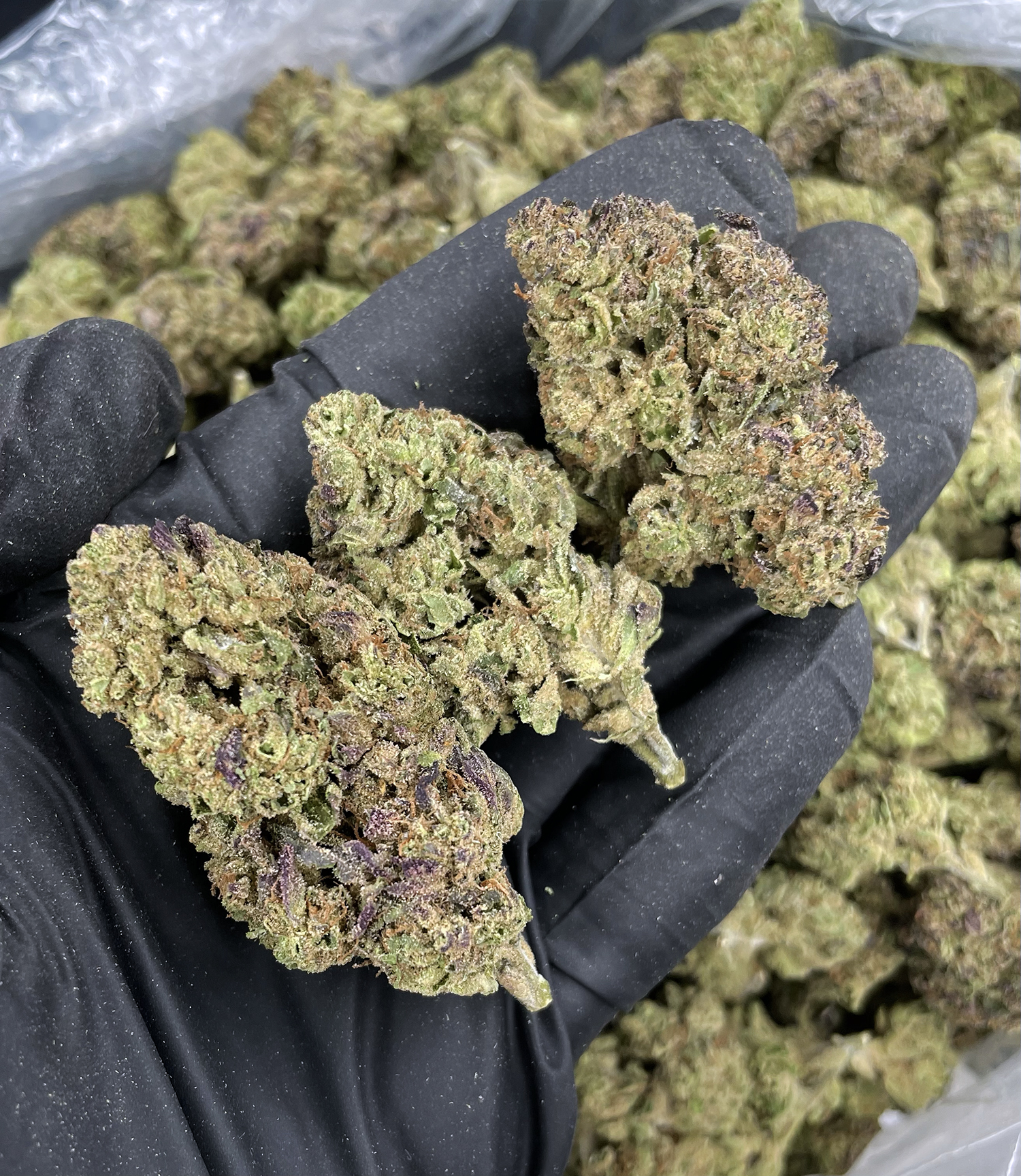• Frosty purple-tinted white trichomes