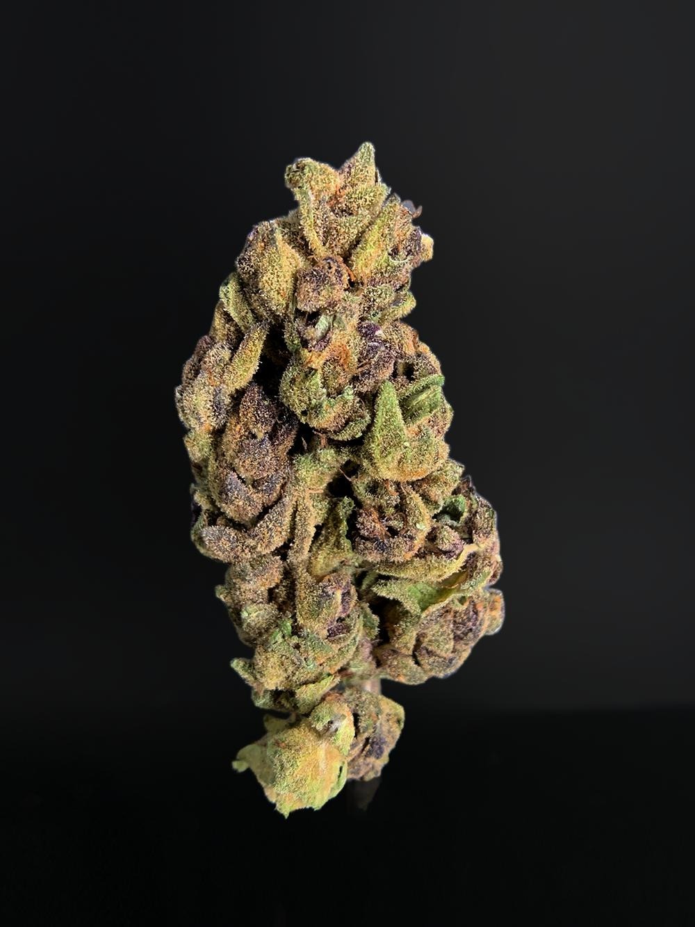 ✨ Crystalline trichomes with a fluffy, semi-dense structure