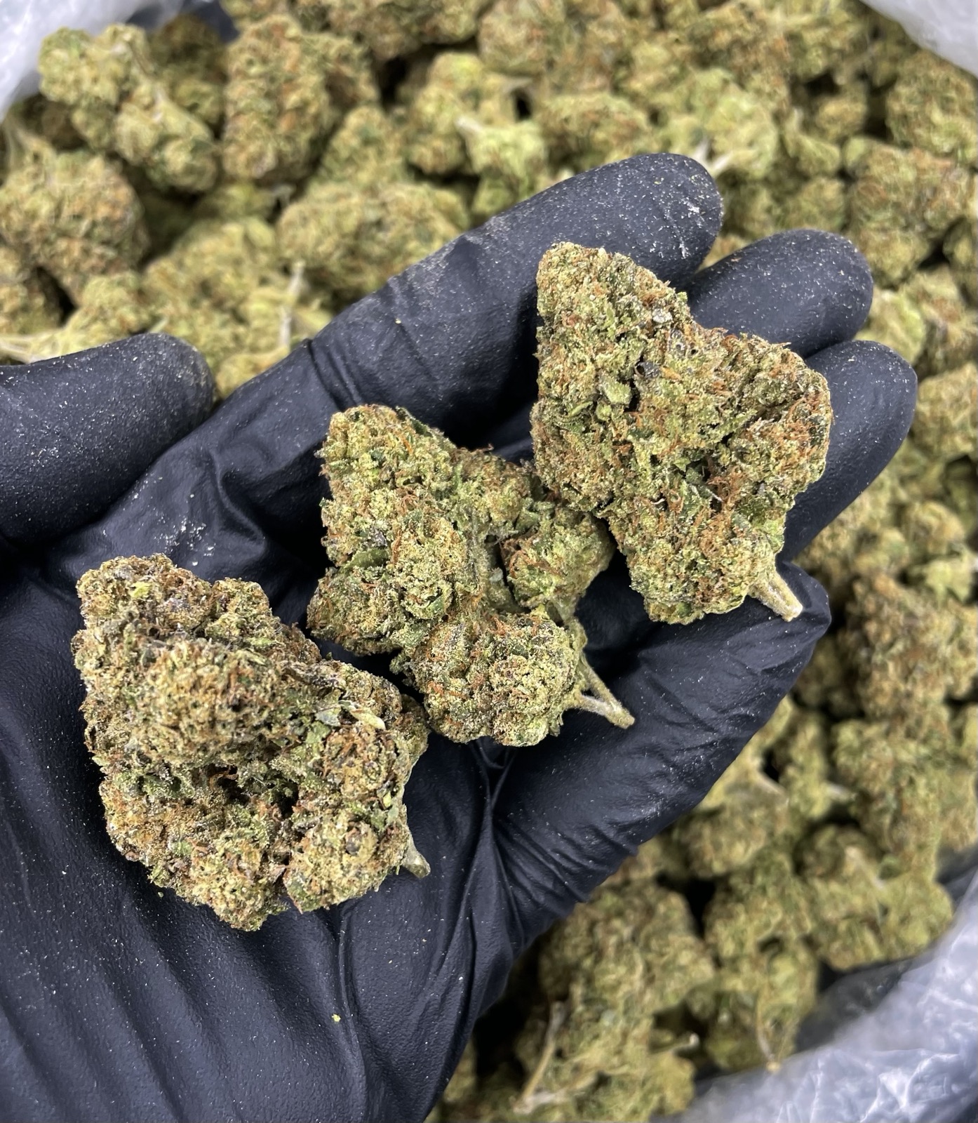 👁️ Appearance: Dense, frosty forest-green buds with amber pistils and heavy trichome coverage